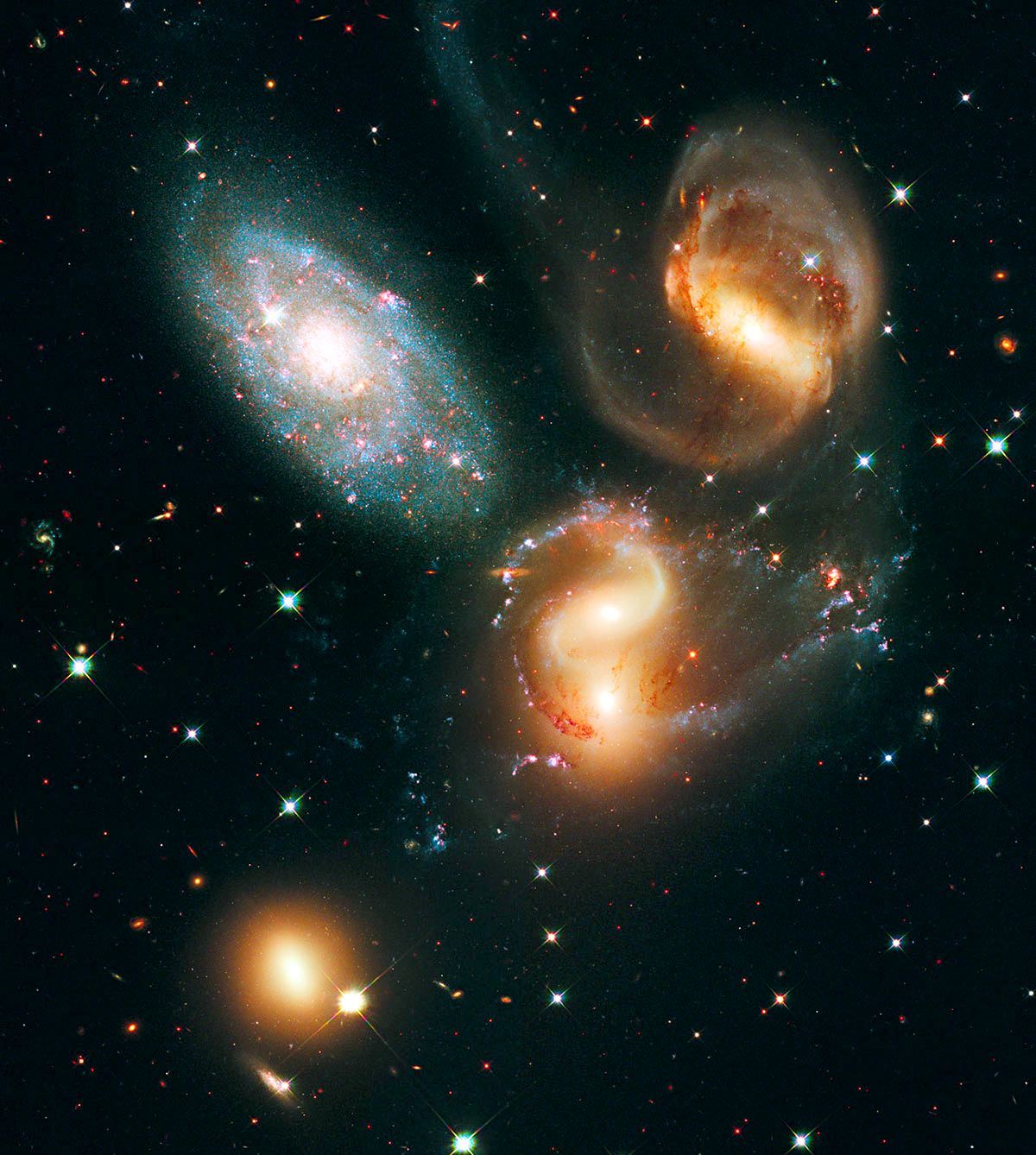 Named after French astronomer Édouard Stephan, Stephan’s Quintet was photographed by the new Wide Field Camera 3 (WFC3). Stephan’s Quintet, also known as the Hickson Compact Group 92, is a group of five galaxies, but one member of the quintet is actually much closer to us than the others.
